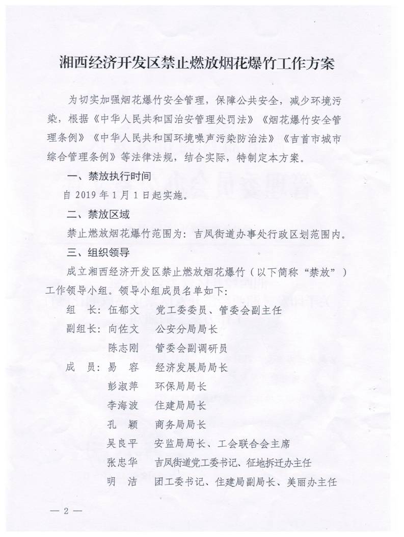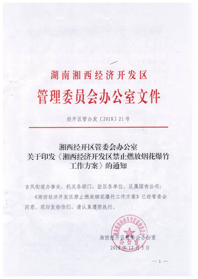 湘西经济开发区禁止燃放烟花爆竹工作方案