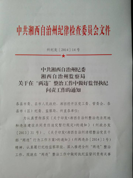 关于在“两违”整治工作中做好监督执纪问责工作的通知