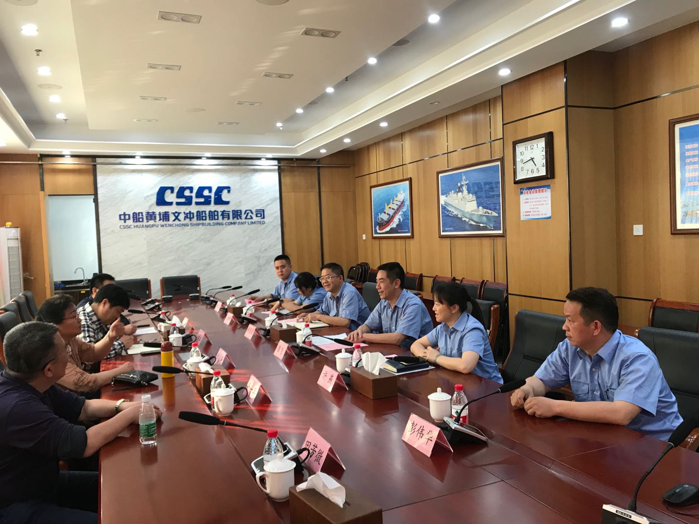 在中船黄埔文冲船舶有限公司,谭吉慧一行受到了公司党委副书记、工会主席陈飞,总经理助理、人力资源部部长许燕,新航公司董事长、党支部书记、总经理黄团亮,新航公司综合管理部部长吴丽明的热情接待。中船黄埔文冲船舶有限公司是中国船舶工业集团公司属下大型造船企业,华南地区军用舰船、特种工程船和海洋工程的主要建造基地,中国建造疏浚工程船和支线集装箱船的龙头企业。该公司自2019年起每年在我院依托焊接技术专业开设冠名班开展订单培养,目前学生人数近80人。座谈会上,谭吉慧书记介绍了学院近年来围绕服务产业、脱贫攻坚的办学情况及订单班学生培养情况,真诚提出要向中船学习民族复兴担当精神、大国工匠精神,践行好习总书记在全国职业教育大会上的重要指示要求。公司党委副书记、工会主席陈飞表示,学院与中船两年来的合作办学进展顺利,湘西籍学生勤奋好学、吃苦耐劳,学院优秀毕业生彭伟华已是公司首席特级技工,建议双方在合作办学中进一步将所涉专业拓展至汽车装备、信息技术等,今年6月公司高层将赴学院进一步开展实地考察、项目合作。会后,谭吉慧一行实地参观了长洲厂区及厂史馆。
