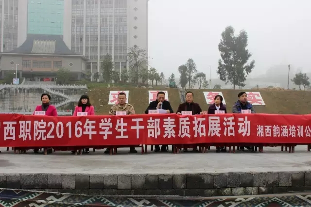 自11月11日开始的湘西职院学生会干部素质拓展活动于11月29日晚成功落下帷幕。本次活动共分信任背摔、法柜奇兵、人椅、同起同坐、无轨电车、生命之旅六个环节。由院学生处心理健康中心主办,吉首韵涵咨询中心协办。院党委委员、分管学生工作的工会主席陈杨晖出席了开幕仪式并多次在活动现场指导。