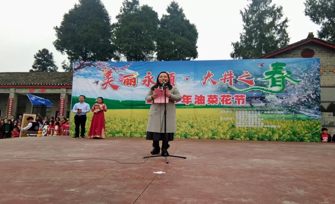 应用外语系主任彭明英受湘西职院党委副书记、院长彭延敏委托在开幕式上致贺词,他指出,近几年大井推进的精准扶贫、乡村振兴、同建同治、美丽乡村等工作,让大井这个有特在文化、特在生态、特在产业小山寨的潜在优势加快发挥出来,相继获得湖南历史文化名村、中国传统村落等称号,父老乡亲的生活更是蒸蒸日上,山峦环抱、翠竹林立的村寨多了份璀璨,读书好文、古色古韵的福地更显朝气。这些发展向好的态势,这些进步向上的印记,既是大井钟灵毓秀的赓续,也是大家共同奋斗的收获。这次灵溪镇“大井之春”油菜花节,把农民生活、农村风情、农业产业融合起来,既强化“呵护自然、亲近山水”的导向,又突出“生态优先、优势优化”的作为,让美丽与发展比翼齐飞、生态与文化交相辉映,乡村的脱贫致富又强了一分前进动力,添了一种时代气质,多了一幅动人图景。学院组织部分师生到大井村开展“三下乡”活动,主要是希望通过大井“风光之旅”,让师生与美丽的油菜花相伴,与多彩的民俗文化沟通,与灵动的山水田园对话,感知乡村的变化、增强服务的动力。
