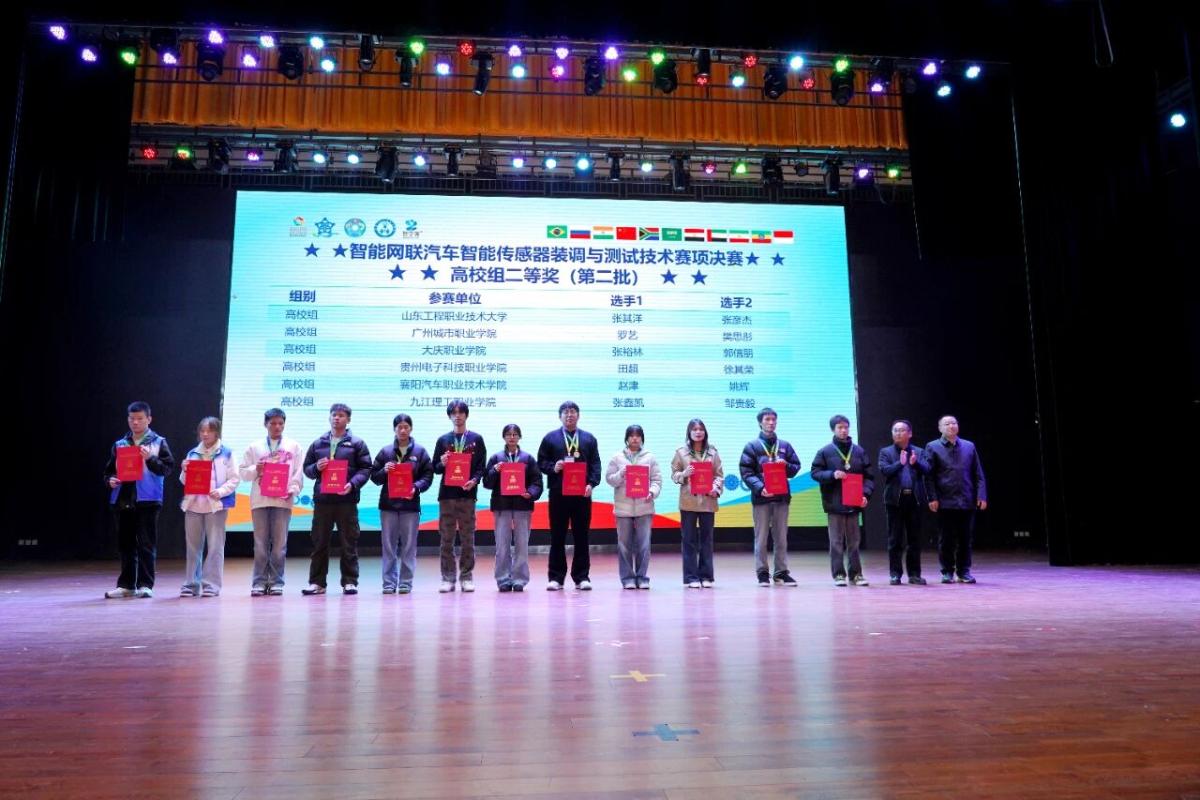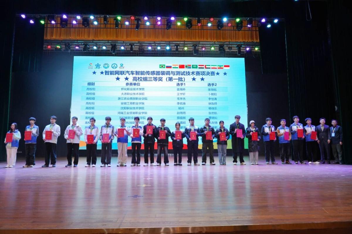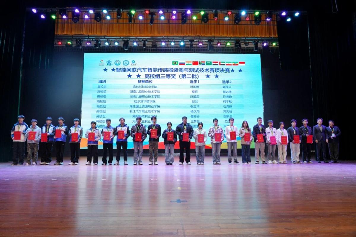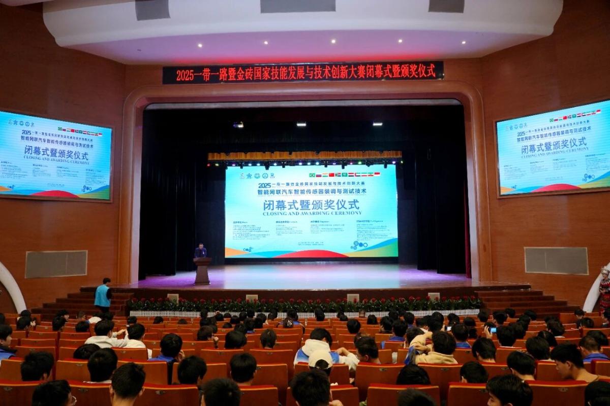 11月29日下午,为期三天的2025一带一路暨金砖国家技能发展与技术创新大赛——智能网联汽车智能传感器装调与测试技术赛项决赛,在湘西民族职业技术学院文体会展中心展示馆圆满落下帷幕。湘西州教育和体育局党组成员、副局长刘修洪,金砖国家技能发展与技术创新大赛组委会执委会国内竞赛办公室副处长王丹丹,北京智学客教育科技有限公司营销总监孙岩,湘西职院党委副书记、副校长陈杨晖,湘西职院党委委员、副校长白刚、吴娟、黄毅等领导出席闭幕式。