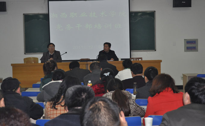 近日 ,我院在五楼B501党员活动室举办基层党务干部培训班,对基层党组织党务干部进行集中培训,州直党工委副书记向义付受邀为受训干部作党务工作知识辅导。学院党委书记吴正有参加了培训并作重要讲话,学院党委副书记曹义文同志主持了培训。