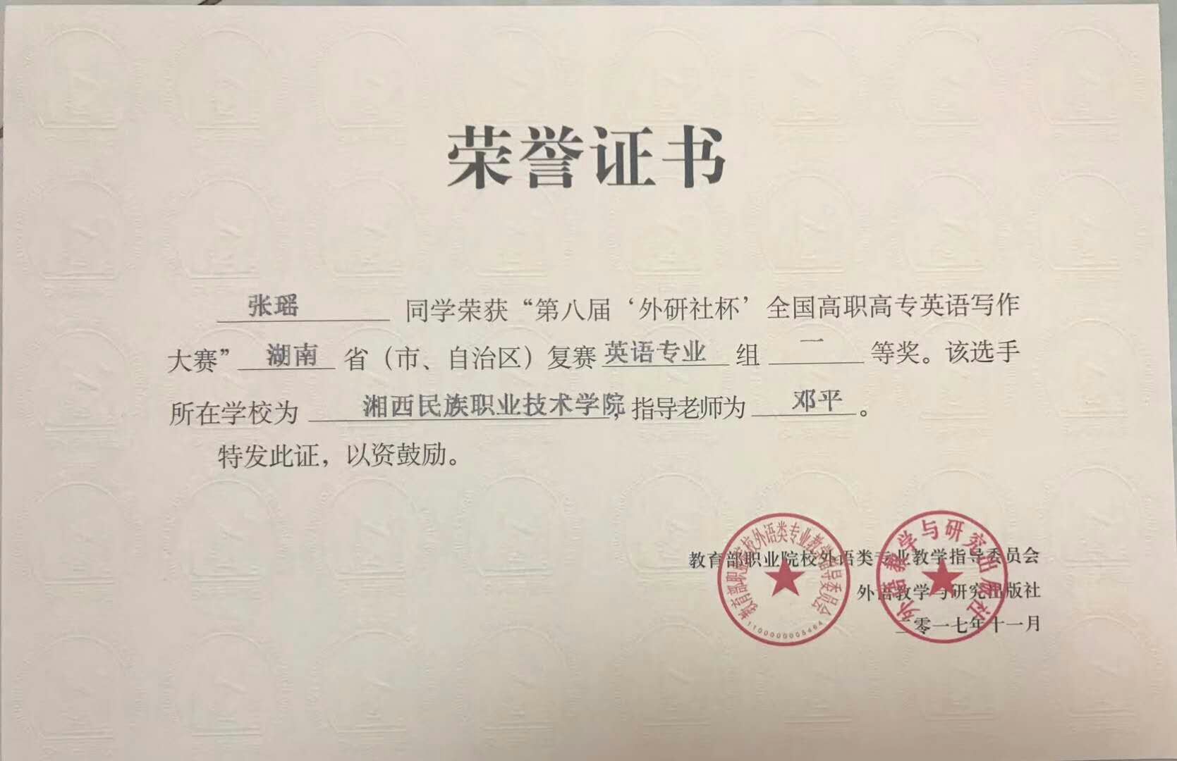 通过参加本次竞赛,学生的英语学习兴趣得到了大幅增强,英语应用能力得到了有效提高,优异的比赛成绩更是充分展示了湘西职院的英语教学水平,也切实帮助学生坚定了学好英语的自信。