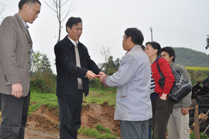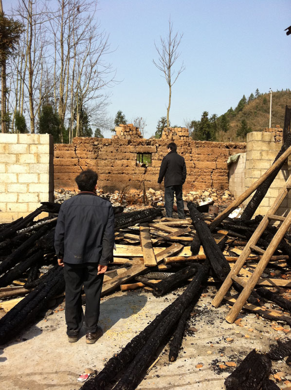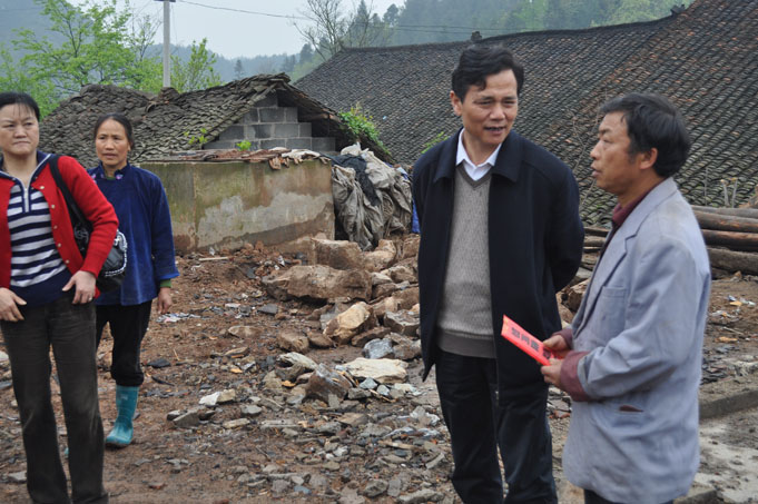 2012 年4月20日 上午,学院院长李光寒、副院长罗红、院工会主席陈杨晖一行带着学院教职工捐赠款物走访慰问了因火灾而陷入困境的凤凰县腊尔山镇山都村村民吴炳川一家。