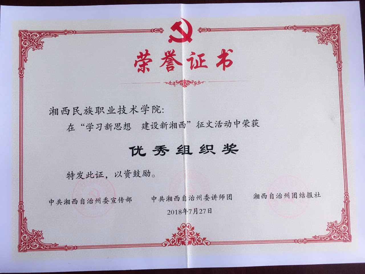 今年来,按照中共湖南省委宣传部的安排部署,省委教育工委、省教育厅决定在全省普通高校举办习近平新时代中国特色社会主义思想“天天见”“天天新”“天天深”系列主题活动。湘西职院党委高度重视,要求把学习宣传贯彻习近平新时代中国特色社会主义思想作为首要政治任务和头等大事,把组织开展习近平新时代中国特色社会主义思想“天天见”“天天新”“天天深”系列主题活动作为学习宣传习近平新时代中国特色社会主义思想的主要抓手,作为2018年学院理论武装工作的主题主线。系列主题活动在湘西职院开展以来,学院党委精心组织开展了《习近平新时代中国特色社会主义思想的理论框架体系》等8次党委理论学习中心组集中学习;党委书记谭吉慧亲自给青马班学员上党课,深入学院扶贫联系村宣讲十九大,以各种形式为广大干部师生开展新思想的辅导学习;全院收到院领导、教师和学生的征文、宣讲稿件、学习心得等近百篇;学院在州委宣传部组织的“学习新思想 建设新湘西”征文活动中荣获优秀组织奖;学院党委副书记、院长彭延敏撰写的《筑牢信仰之基 担当时代之责 以新思想引领新作为推动新发展彰显新气象》一文荣获一等奖,并在新湖南、团结报等主流媒体全文刊发;党委副书记、副院长宋清华撰写的《深入学习习近平新时代中国特色社会主义思想 灵活运用马克思主义思想方法和工作方法》一文荣获征文活动二等奖,在湘西州团结报全文刊发;藏族学生次仁巴吉撰写的学习心得《学思践悟新思想》也被湘西州团结报全文刊发。系列主题活动有效推动了学院政治理论学习的不断深入和各项实践工作的科学开展。