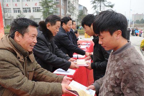会上还隆重举行了“华实奖助学金”发放仪式。“华实奖学金”是湘西职院81届财会专业毕业校友-----现任北京工商大学副校长谢志华等人设立的,每年出资5万元,用于奖励10名品学兼优的湘西职院学生,每名学生5000元。学生处副处长黄呈勇宣读了今年“华实奖学金”获奖学生名单,吴正有书记、李光寒院长、杨建平副院长分别为获奖的十名学生颁发了荣誉证书及5000元奖学金。