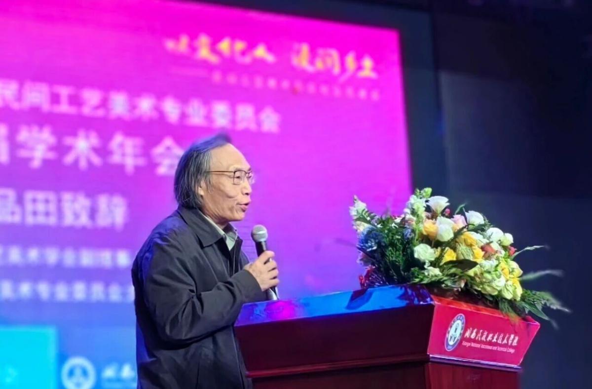 吕品田在致辞中深入阐释了本届年会主题“以文化人 浸润乡土”的深刻内涵。他强调,民间工艺美术不仅是中华优秀传统文化的活态载体,更是推动乡土文化振兴、促进人的全面发展的重要力量。他呼吁广大民艺工作者坚守文化根脉,以创新为驱动,积极投身文化强国建设。