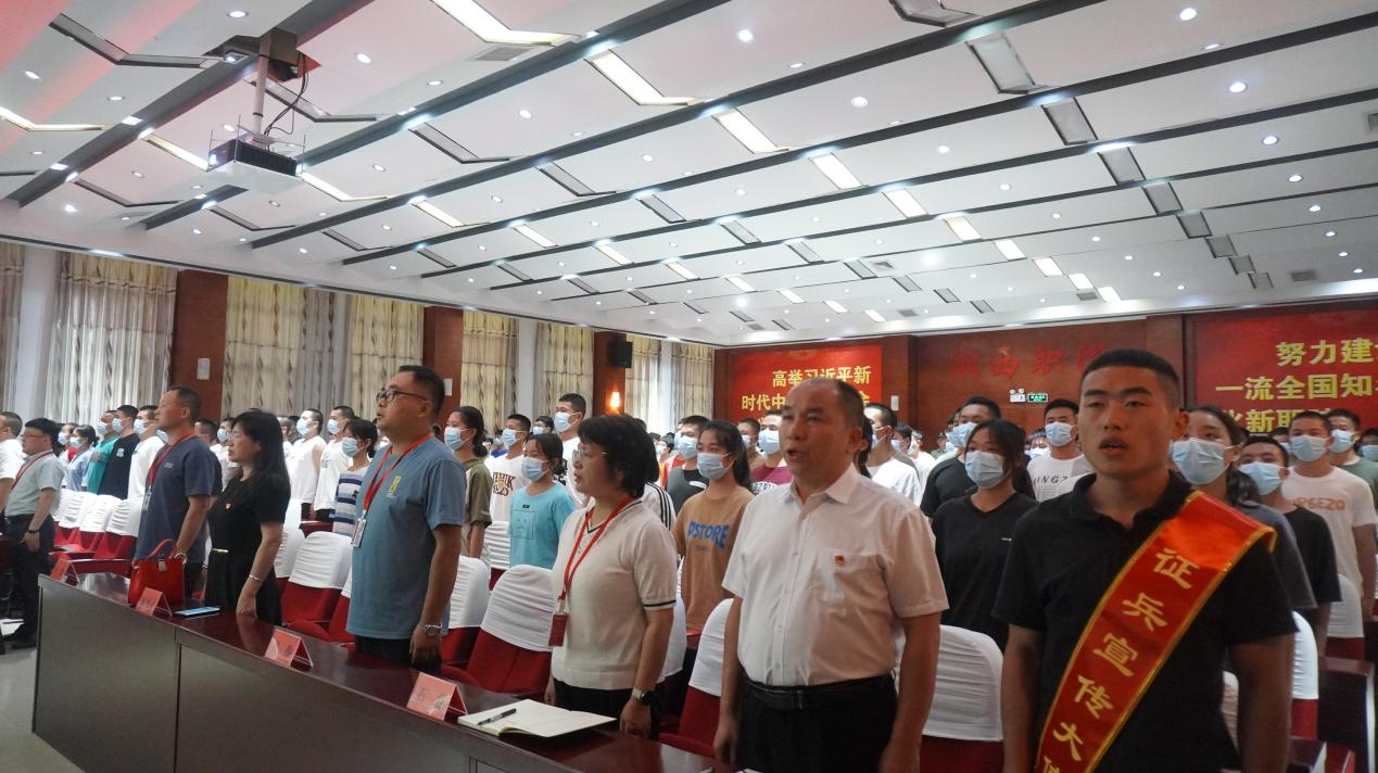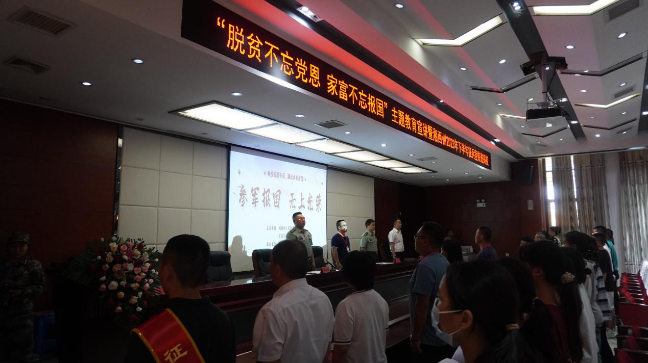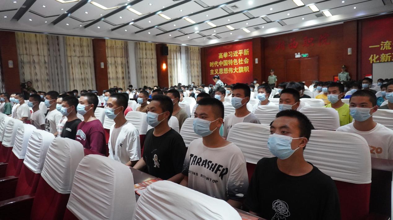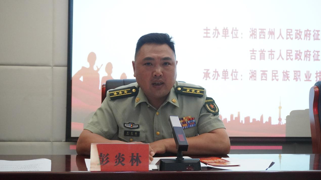 6月20日下午,湘西州人民政府征兵办公室、吉首市人民政府征兵办公室联合湘西职院在学院D区报告厅举行“脱贫不忘党恩 家富不忘报国”主题教育宣讲暨湘西州2023年秋季征兵宣传进高校活动。学院党委委员、副院长白刚,州征兵办主任、州军分区动员处处长林庆根上校,吉首市人武部部长彭炎林,学院保卫处处长田利华出席活动。