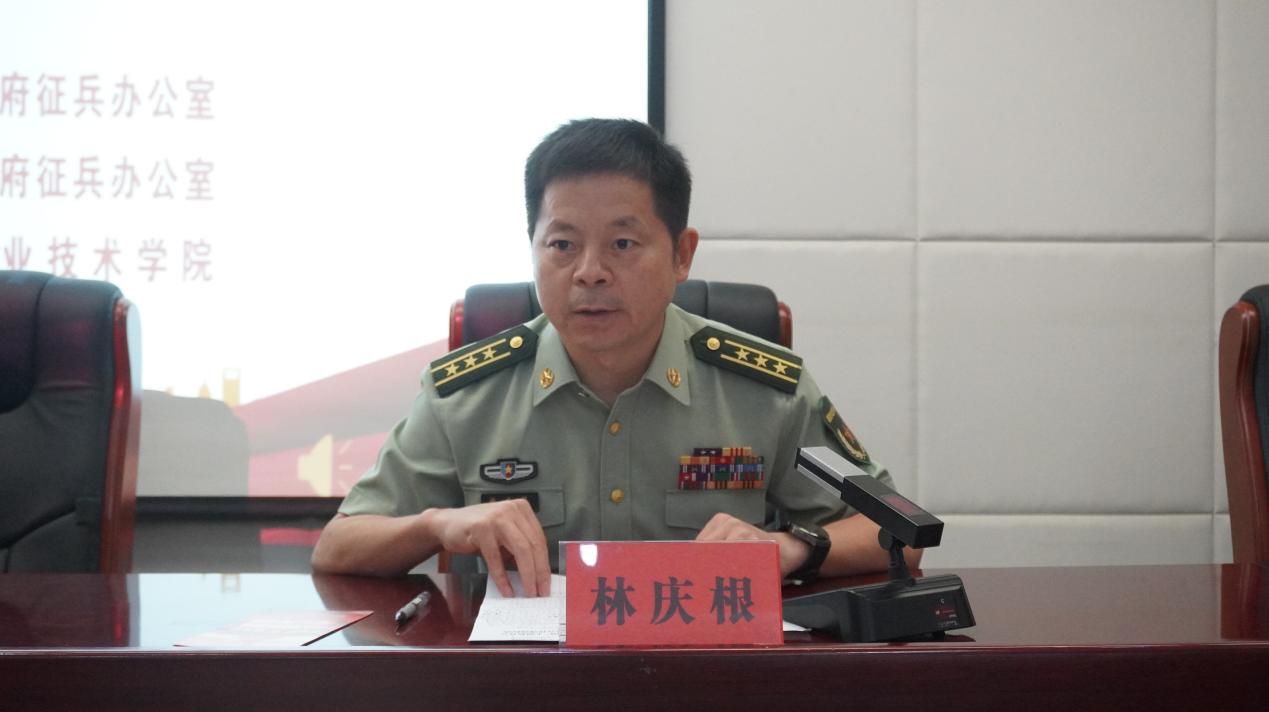 林庆根在讲话中指出,征兵是建设巩固国防和强大军队的源头工程,而高校是做好征兵宣传、提升征兵质效的主阵地。青年人要有吃苦的精神,不仅要当积极的践行者,还要当好征兵的宣传员。“参军报国,无尚光荣。青年人要去部队磨炼一下,不管是意志体质、价值观念,都会发生质的变化。”并提出三个希望,希望大家心怀家国,怀有爱国之情报国之志;希望大家积极入伍当兵,报效祖国;希望大家建功立业,实现自己的青春梦想,开阔视野,开启不一样的人生,为中华民族的伟大复兴贡献出自己的力量。