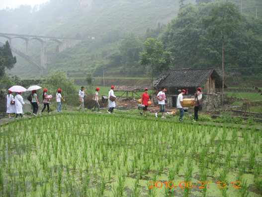 为积极响应团省委、团州委有关大学生开展社会实践活动的号召,落实《关于组织开展湘西职院2010年大学生志愿者暑期“三下乡”社会实践活动的通知》的文件精神,学院团委实践部组织了一支30人的实践团在凤凰县腊尔山镇骆驼山村开展了为期一个星期的暑期“三下乡”社会实践活动。实践团在活动过程中深入实践科学发展观,在服务农村物质文明、精神文明、政治文明、生态文明建设的过程中“受教育,长才干,作贡献”,进一步提高自身的创新能力、实践能力和创业精神,为湖南省全面推进建设小康社会贡献力量。