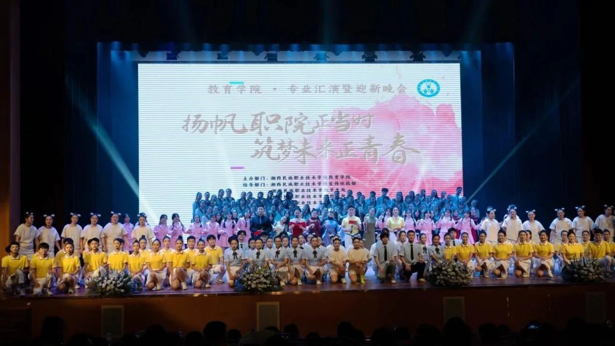 12月12日晚,湘西民族职业技术学院教育学院在文体会展中心展示厅举办“扬帆职院正当时·筑梦未来正青春”专业汇演暨迎新晚会,学院党委书记谢绍猛,党委委员、副院长陈杨晖,党委委员、副院长白刚,党委委员、副院长吴娟,党委委员、组织部部长王丹子,党委委员、宣统部部长向昌斌及各处室、二级学院负责人出席此次活动,教育学院900余名师生齐聚一堂,共赴青春盛宴。