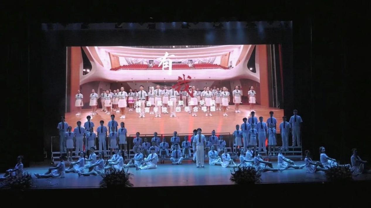 教育学院四季合唱团用一首歌曲《有我》拉开了晚会的帷幕,舞台上跳跃的音符演奏着青春的活力,闪耀青春,砥砺前行,职院青年正在路上。