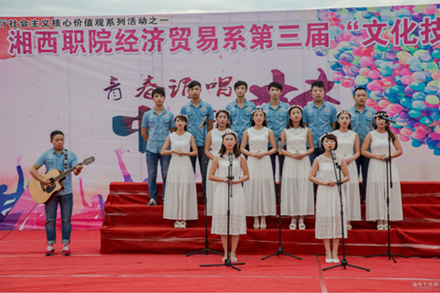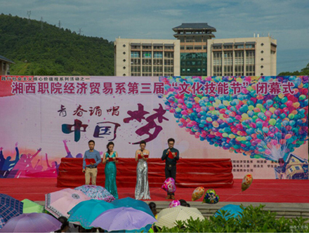 日前,经济贸易系在学院中心广场举行了以“青春唱诵中国梦”为主题的第三届文化技能节闭幕式。