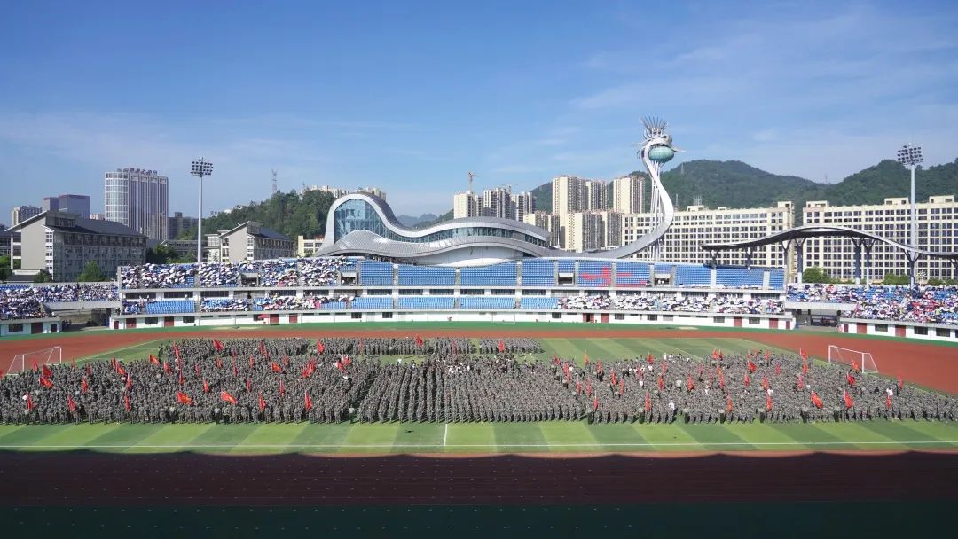 金光万里壮秋色,绿荫场上正青春。9月19日上午,湘西职院2023年开学典礼暨新生军训总结表彰大会在文体会展中心体育场举行。湘西职院党委书记谢绍猛出席大会并讲话,党委副书记、副院长宋清华主持会议,全院师生1.5万余人参加大会。