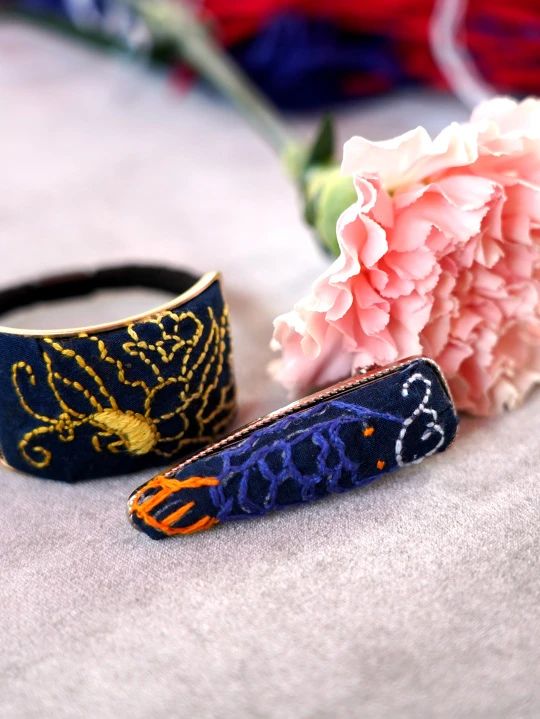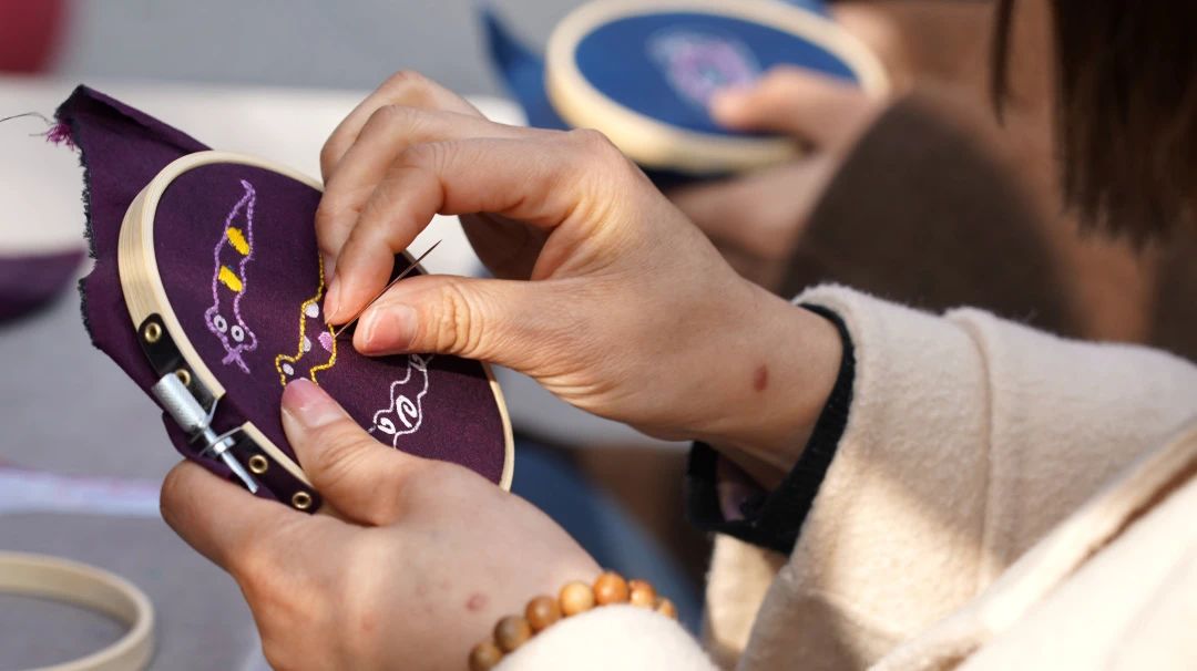 为让女教师们更直观领略非遗文化的商业价值,活动现场特别设立了非遗集市。集市上,精致小巧的发卡、胸针、书签、钥匙扣,典雅大方的发带、丝巾、发簪等共 200 余件作品琳琅满目,每一件都凝聚着彭老师和同学们的心血与巧思。女教师们在体验刺绣之余,还能选购心仪的苗绣商品,将非遗文化带回家。
