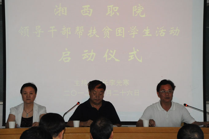 6 月 26 日 ,湘西职院在全院范围内正式启动领导干部“一对一”结对帮扶贫困学生活动,活动以切实转变干部作风,着力解决贫困学生学习、生活困难,进一步密切党群干群关系为目标,以此增强领导干部的责任感和使命感,扎实工作、创新工作,为学院的建设与发展多做贡献、再立新功。