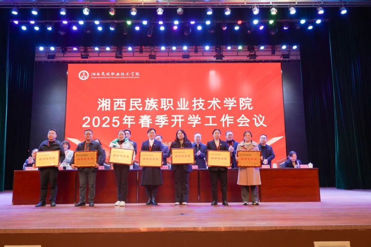 党委委员、副校长陈杨晖宣读了《湘西民族职业技术学院2024年目标管理考核结果的通报》,校领导为获得2024年年度考核综合优秀部门颁奖。教务处、旅游管理学院负责人分别作了典型发言。