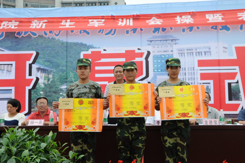 会操表演结束后,学生处处长杨云宣布了本次军训会操评比优胜班级、内务先进班级及军训先进个人的获奖名单:15-5高汽2班、15-5高英2/3班、15-5高计2班等17个班级分获军训会操一等奖、二等奖、三等奖;15-5高旅1 班等9个班级被评为内务先进班级;黄仕明、吴超等217人被评为军训先进个人。参会领导分别为获奖班级和个人颁发了奖状、证书。