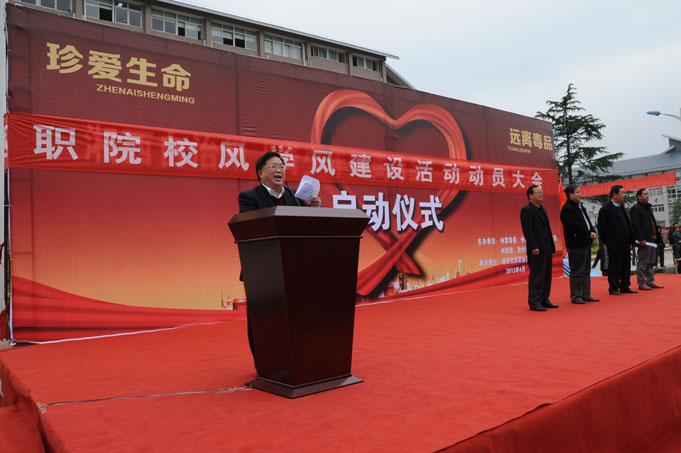 4 月12日 下午,学院2013年校风学风建设动员大会在学院篮球场隆重举行。学院党委书记吴正有、副书记曹义文、副院长杨建平、学院关工委常务副主任胡和生出席大会。大会由曹义文副书记主持。