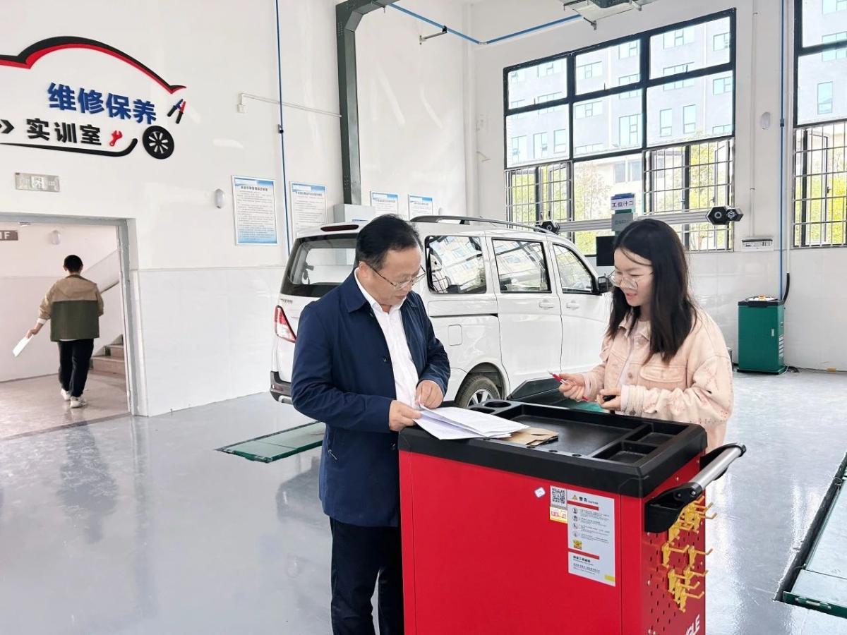 谢绍猛进入实训区域,走访了解信息与智能学院学生自习情况后,在理工大楼重点查看了汽车维修与汽车营销技能抽考准备情况,并与师生进行亲切交流。随后,谢绍猛一行来到交通工程学院和机电工程学院实训车间,查看教室功能布局、教学用具配备以及厕所卫生环境等情况,现场向有关负责人反馈了存在问题并督促整改。