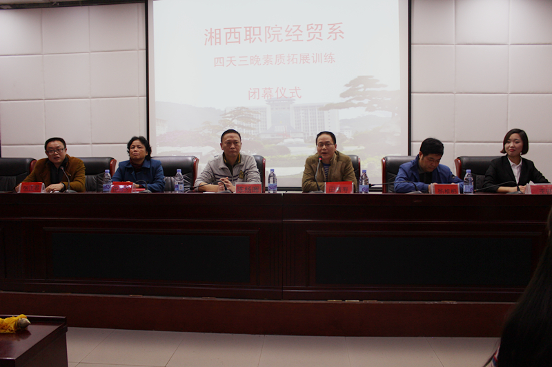 经济贸易系与深圳奋达教育集团联合举办了为期四天的首届素质拓展训练。10月27日,在D区会议室举办闭幕式。学院党委委员、工会主席陈杨晖,州教体局职成科负责人田清寿,招生处处长杨稚桓,经贸系主任田芳芝以及奋达集团11名培训师和系部参加素质拓展训练的全体学生参加了闭幕式。闭幕式由经贸系副主任张正君主持。