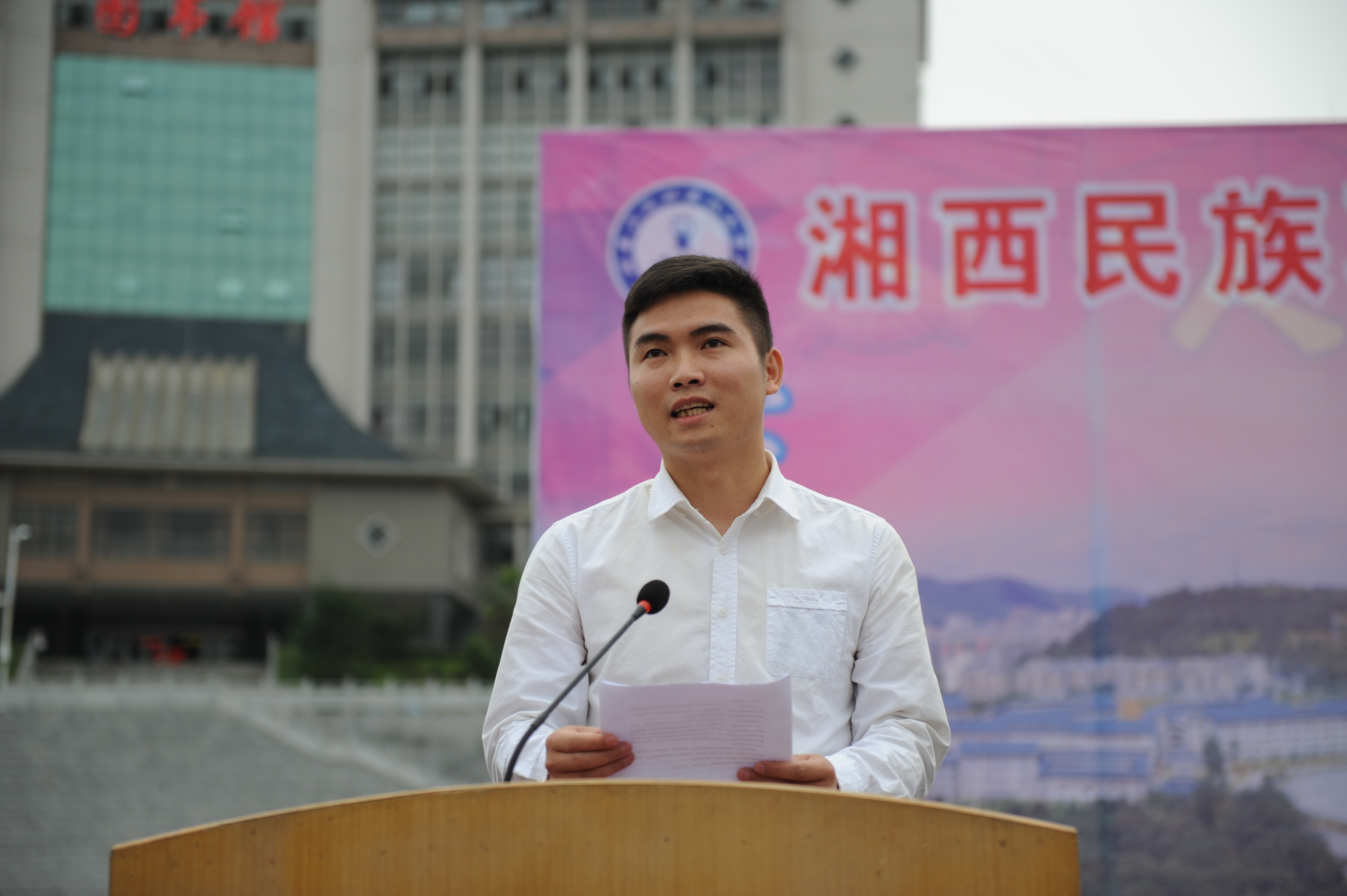 彭延敏在致辞中代表全院师生员工,对4428名新生的到来表示热烈的欢迎。他表示,湘西职院迄今走过了六十年的风雨历程,为社会培养了大批优秀人才,今天的湘西职院,展现出更美的校园风貌,展现出更大的发展格局,展现出更强的办学实力,展现出更高的社会声誉。当前,随着院第一次党代会的胜利召开和建州60周年庆祝活动的顺利举办,学院发展已进入增速提质的快车道,学院将按照上级决策部署,瞄准职业教育服务发展、促进就业的办学方向,秉持“崇德尚技,求真务实”的校训,坚持质量立校、人才强校、特色兴校、开放活校,大力实施管理提升、环境提升、师资提升、育人提升、文化提升、生源优化、职教扶贫、科研提升、开放办学、民生改善等强院兴院“十项工程”,着力推进创新发展、特色发展、内涵发展、提质发展。同学们来到职院,绝对是正确的选择,应该有理由感到自豪和骄傲,也应该有信心对未来充满期待。