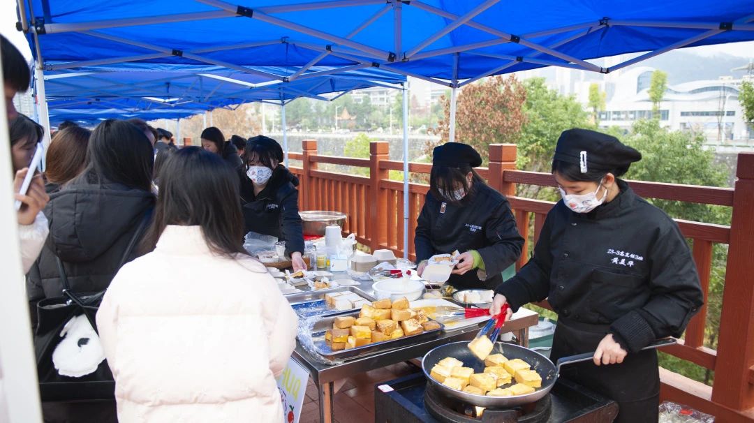12月10日,由旅游管理学院主办的第五届校园美食节,在学校师生万众期盼下,于学校江畔观景台如期而至。本次旅游管理学院对师生精心制作的菜肴和甜点进行了展示,开启了一场味蕾与心情双重享受之旅。活动期间,学校党委书记谢绍猛,校长翁波等领导到现场指导工作、参加活动。