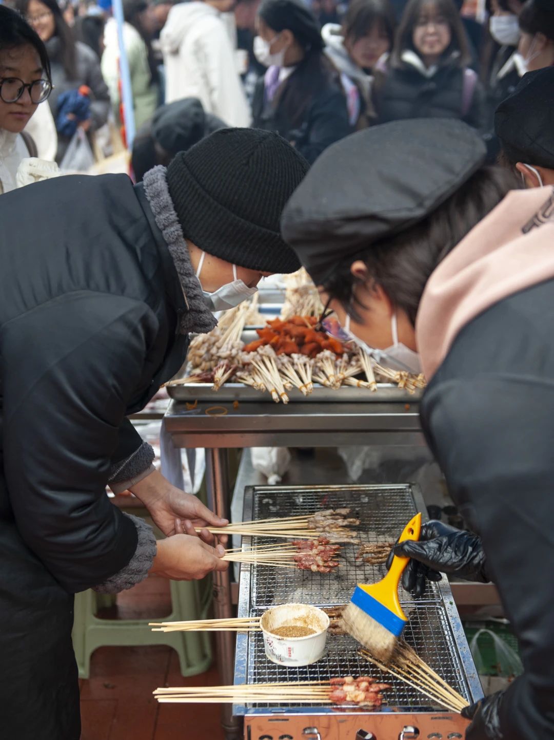 活动现场可谓烟火气十足,一个个摊位堪称一方方“美食小天地”,中式西式美食应有尽有。热辣烤串,滋滋冒油,孜然辣椒一撒,香气扑鼻,光看着就让人直流口水;纸杯蛋糕,蓬松绵软,奶油裱花俏皮可爱,入口即化的甜蜜直击心灵。更有脑洞大开的创意料理,水果寿司卷藏着缤纷惊喜,奥利奥咸奶油纸杯碰撞新奇口感,让人忍不住想要大快朵颐。当然,现场也少不了炒饭、面点这种能够满足饱腹的主食,让大家在参加活动的同时,正好顺便解决了午餐。