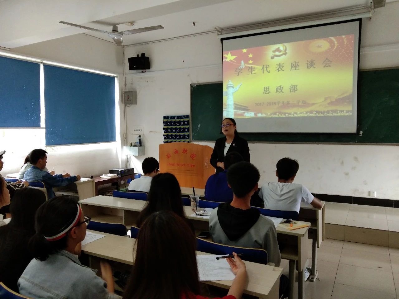 为及时了解和掌握本学期思想政治理论课教学情况,进一步加强教学管理,提高教育教学质量,5月31日中午,湘西职院思政部在B301教室召开了17级三年制高职班学生代表座谈会。会议由思政部主任熊谟菊主持,思政部高职教研室主任魏戬、教师代表张敬亭及17级三年制高职班的60余名学生代表参加了会议。