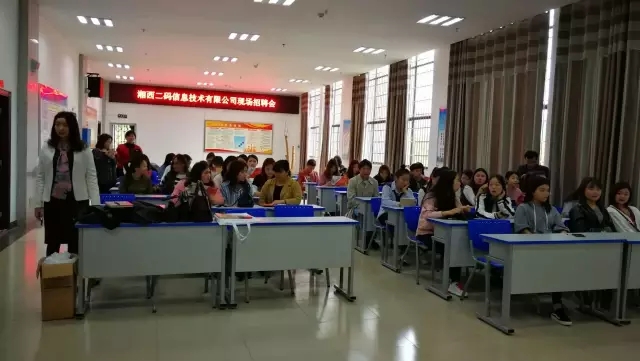 为更好地开辟就业渠道,给学生提供更多更好的就业岗位,湘西职院民族艺术系携手就业指导中心分别与台港澳独资公司欧色时装、欧瑞妮时装以及二码信息技术有限公司于4月13日、14日、17日为2017届97名大专毕业生举办了三场校园专场招聘会。