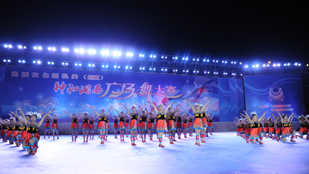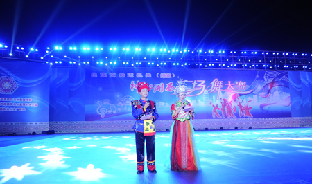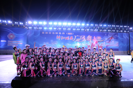 为贯彻落实州委、州政府“文化强州”发展战略,更好地传承发展湘西民族文化, 11月26日晚7点 ,由州委宣传部、州直工委、州文广新局联合主办的“民族文化进机关·‘神秘湘西’广场舞大赛”在吉首市人民广场隆重举行。来自11个州直系统的代表队,用一支支热情洋溢,富有民族特色的舞蹈驱散了冬夜里的寒意,为寒风中前来观摩比赛、为选手们加油助威的嘉宾和观众们带来了一场视觉上的饕餮盛宴。