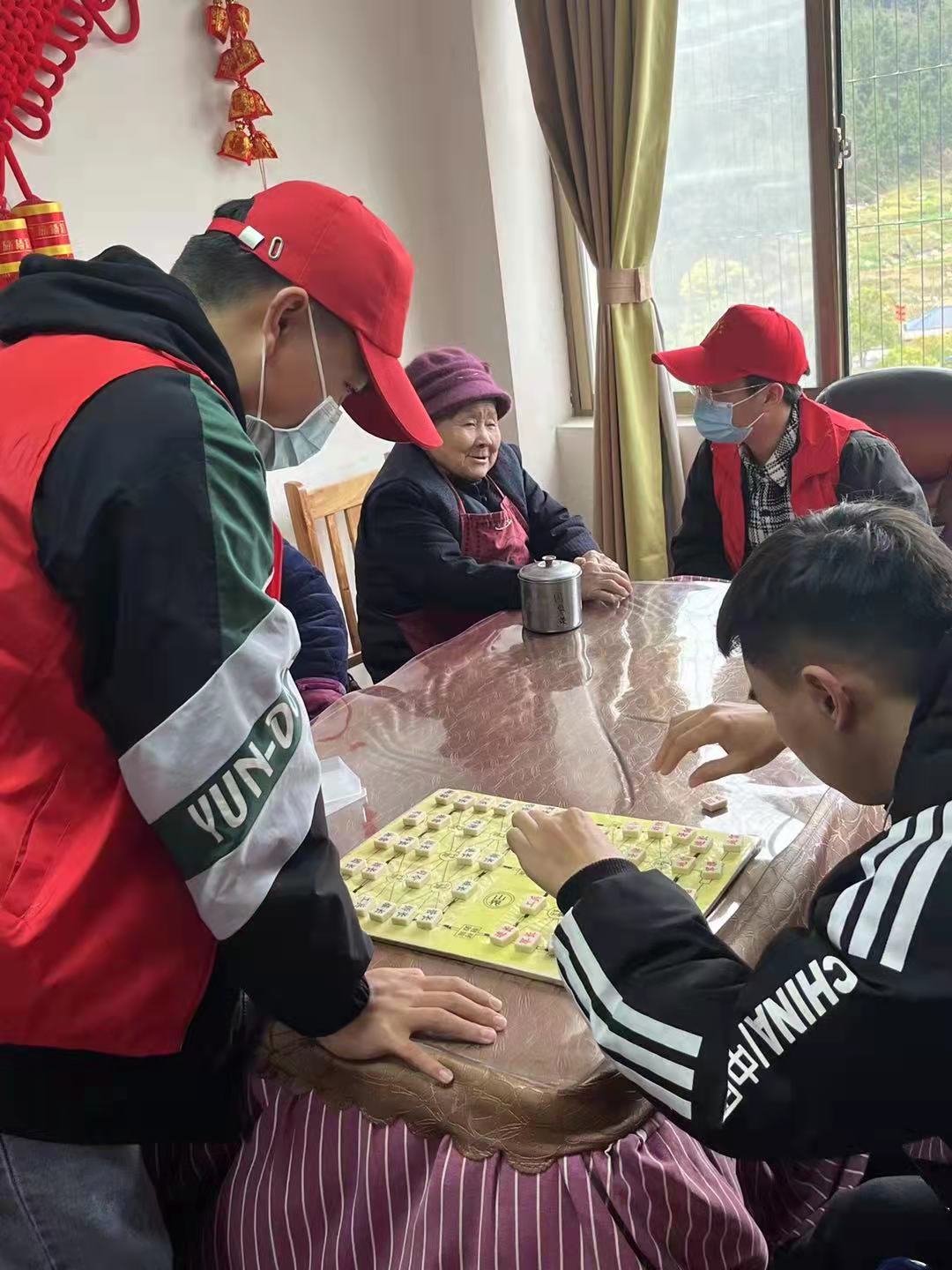 全面的卫生打扫过后,志愿者们来到楼上老人们的活动室,与老人们攀谈,倾听老人的故事,听老人讲述当年他们激情燃烧的青春往事;陪老人下下棋,“过过招”;给老人们表演歌曲,带他们回忆青葱岁月,老人们岁月斑驳的脸庞上露出了满足的笑容。